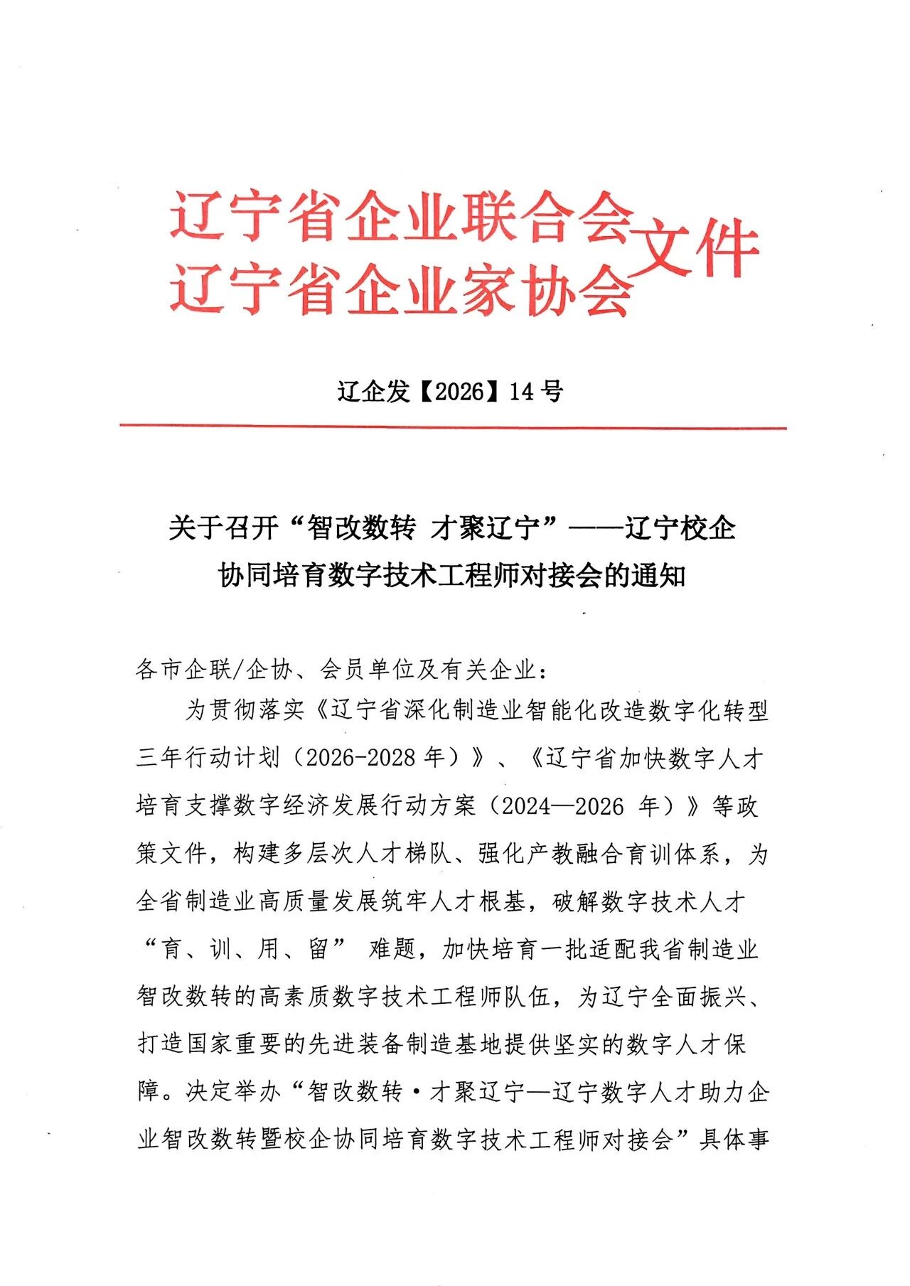 关于召开 “智改数转 才聚辽宁” —辽宁校企协同培育数字技术工程师对接会的通知