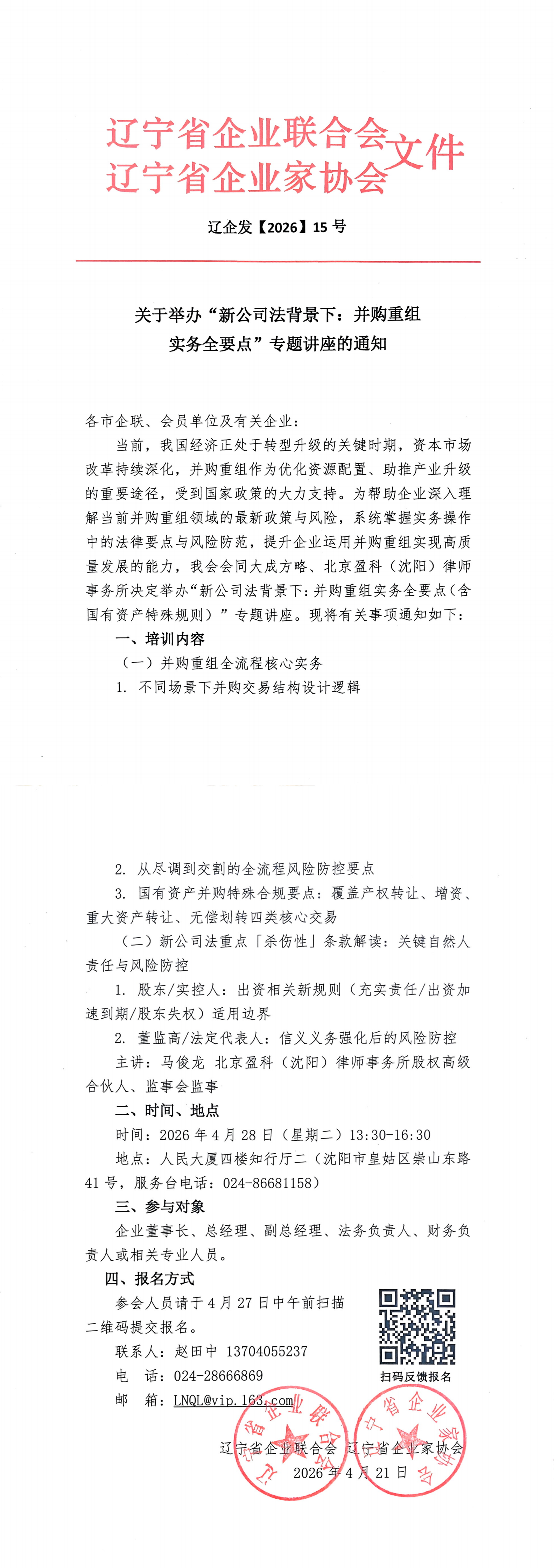 关于举办“新公司法背景下:并购重组实务全要点”专题讲座的通知