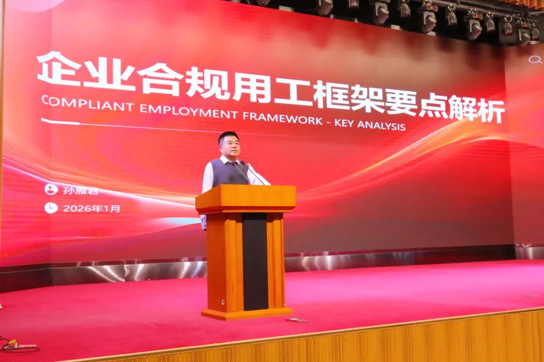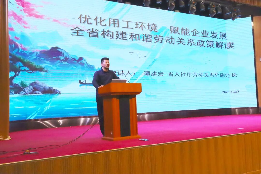 随后的专题讲座环节紧扣实务。省人社厅劳动关系处谭建宏副处长从政策监管视角出发,系统解读了当前劳动用工领域的法律法规框架与合规管理核心要求,为企业划清了政策红线。